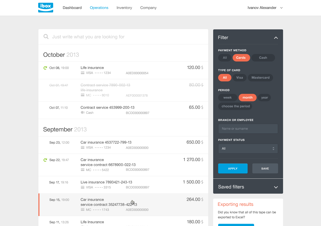 iboxPro gives you the ability to acquire card payments with mobile terminal connected to your smartphone – anywhere, anytime you need. With iboxPro sales and accounting analytics tools you will see how your business works – both in little shop and in network with tens of agents and offices